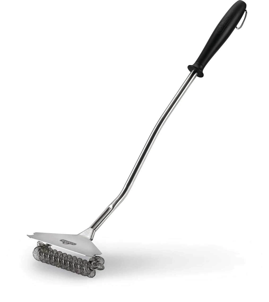 Keep your grill’s cooking grates clean and ready to cook with this bristle-free brush from Napoleon. The sturdy handle allows you to apply adequate pressure to get stuck on food off your grates while the flat grid scraper aids in the process as well.