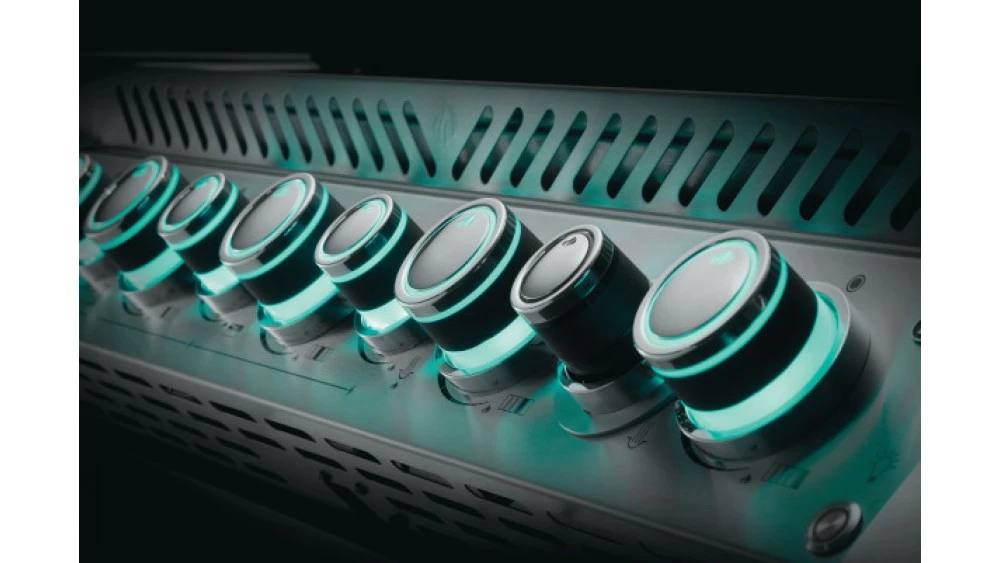 On the control panel, each dial is backlit with a stylish cycle lighting system. Lights will change colour until you choose the best effect for you. These lights will automatically turn on when you stand in front of the BBQ. As well as this, an illuminated Napoleon logo will project onto the ground when the lights are on. The lights will automatically turn off after 15 minutes if you are not standing in front of the BBQ. Internal lights in the hood make it easy to cook whatever time of day or night it is.